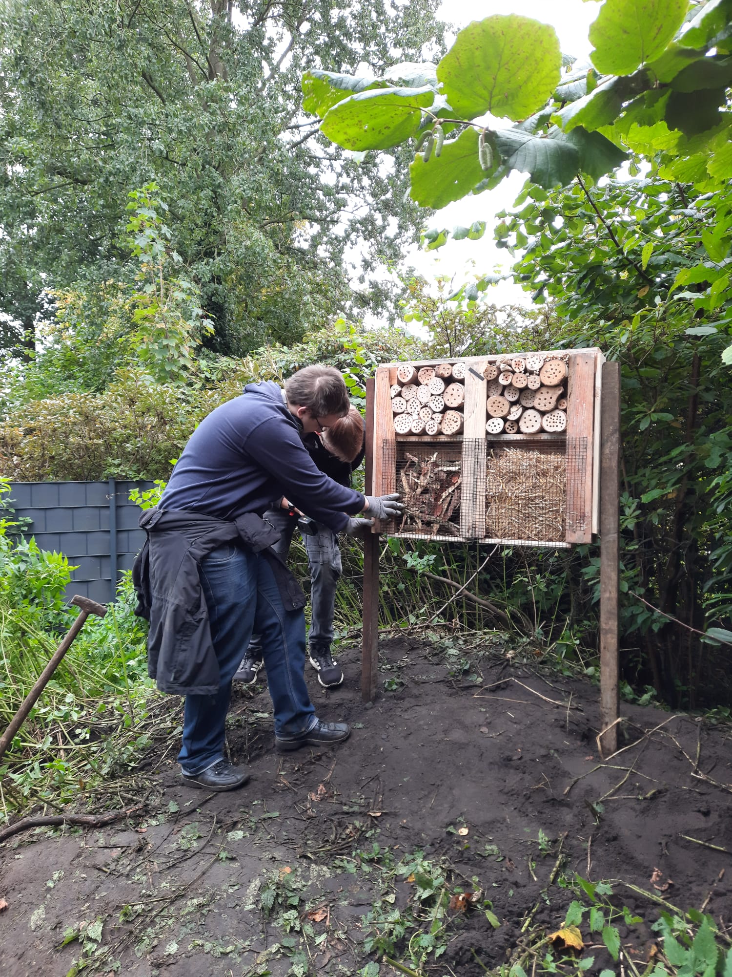 Das erste Insektenhotel haben wir bereits in unserem Schulgarten aufgestellt und hoffen nun auf viele „Bewohner“ im nächsten Frühjahr.